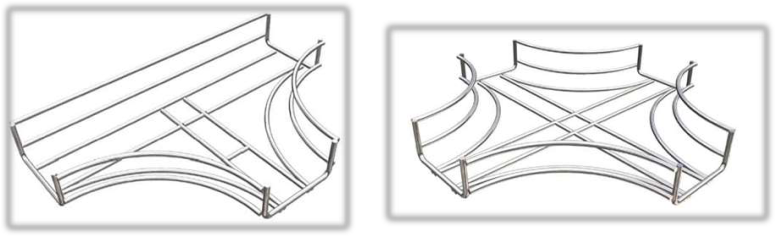 Leitos aramados, com acabamentos em galvanizado eletrolítico, imersão a quente, atendendo as normas NBR 10476/88 – NBR 6323, e aço inoxidável 304, material que apresenta excelente resistência à corrosão, conformabilidade e soldabilidade.